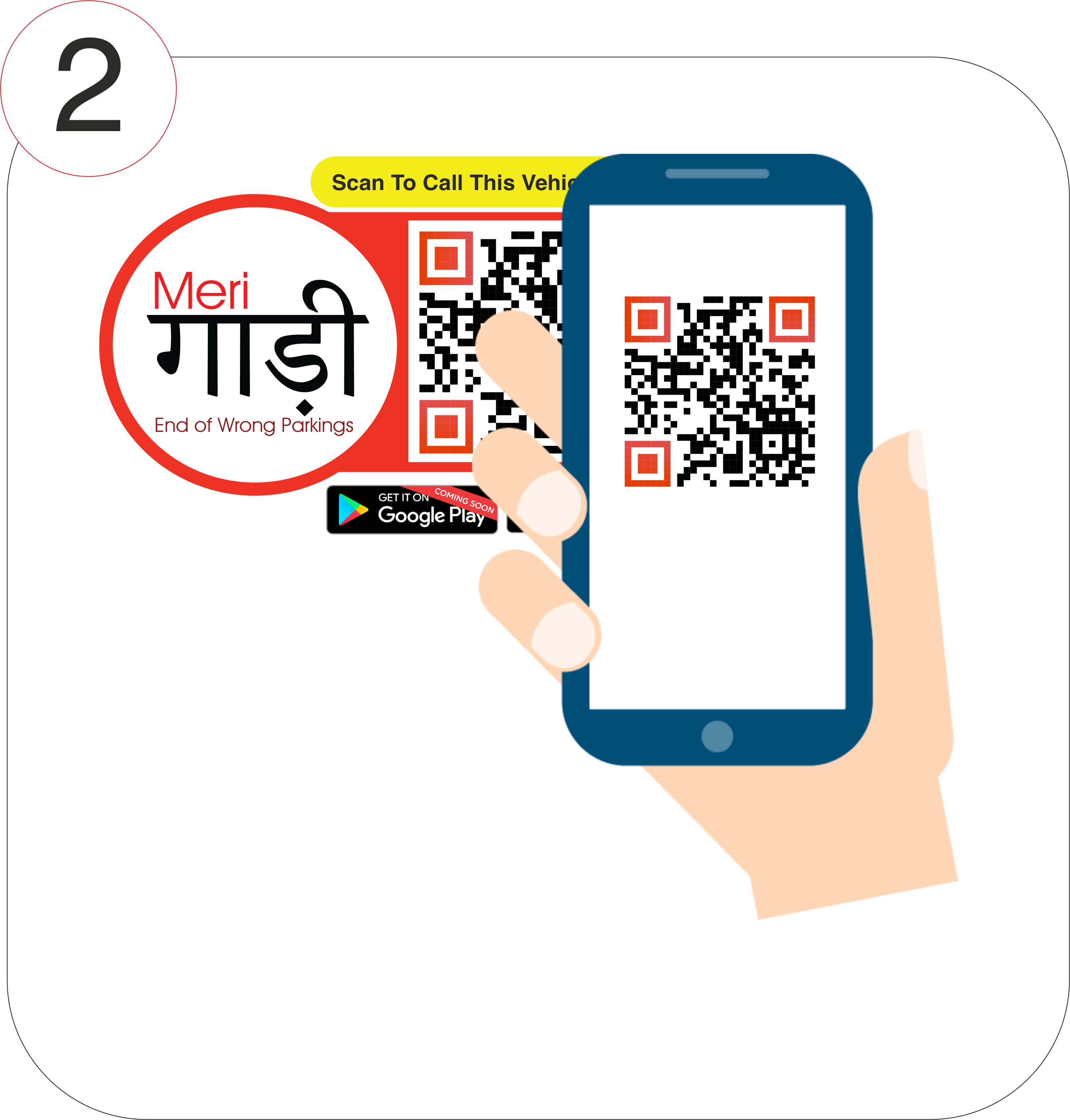 Scan the QR Code with your mobile camera, placed on the car which will help you to connect the car owner instantly.